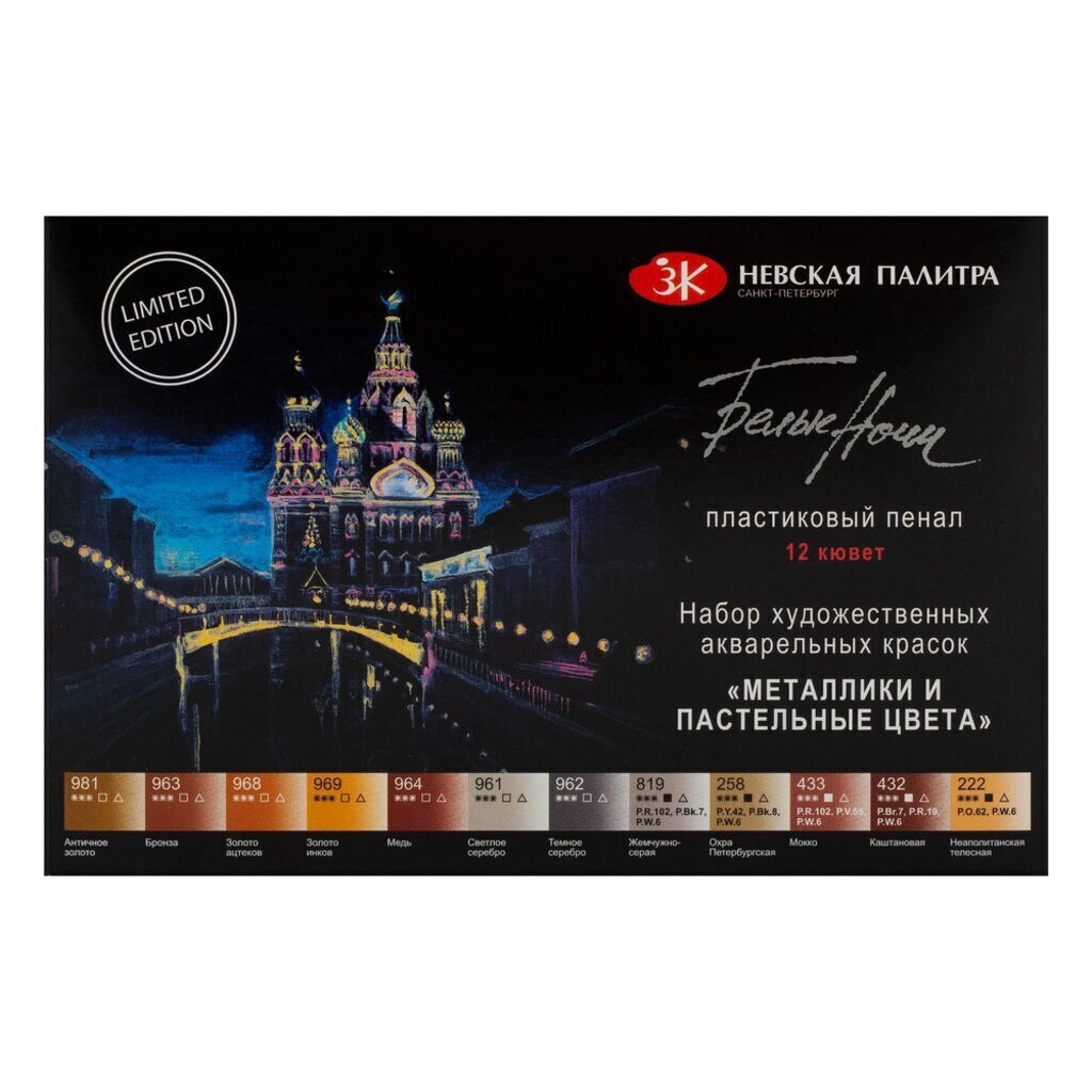 Акварельные краски худож. 12цв. Белые Ночи "Металлики и пастельные цвета" кюветы, в пластике*