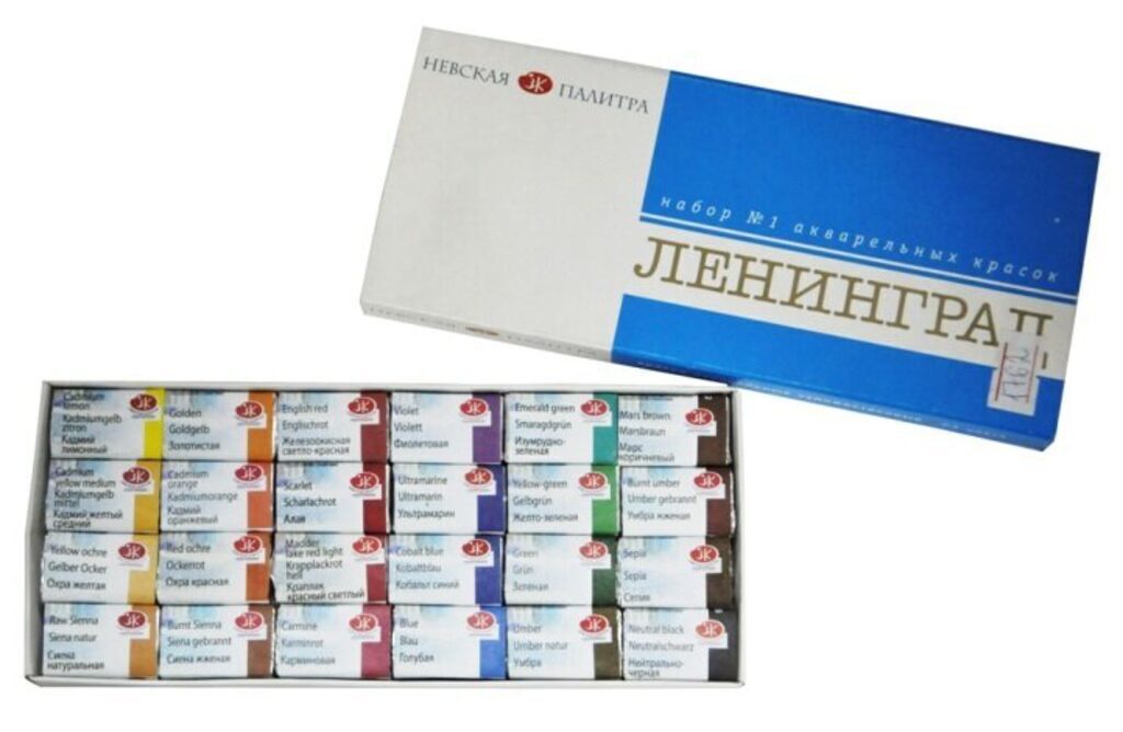 Акварельные краски худож. 24цв. ЛЕНИНГРАД-1, кюветы