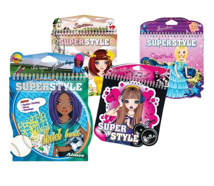 89635 Блокнот с трафаретами и наклейками Superstyle185*185мм. 4 дизайна.В наборе:инструкция, лист с наклейками, 2 листа с трафаретами, 24 листа с эскизами