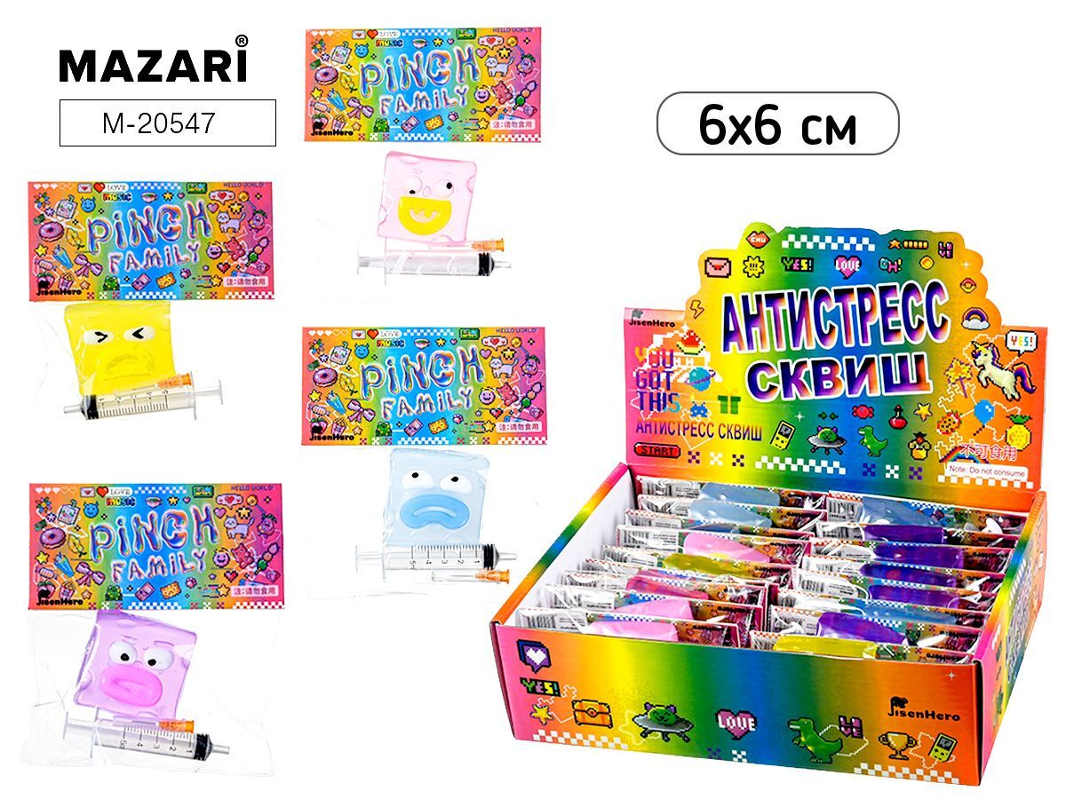 Антистресс-мялка "Сквиш квадрат" 6*6см, 4диз., с шприцем
