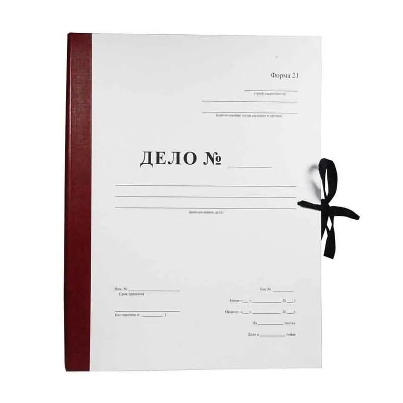 Архивная папка "Дело" (форма 21) А4, 40 мм, бумвинил, с гребешками, шнурки, бордовая