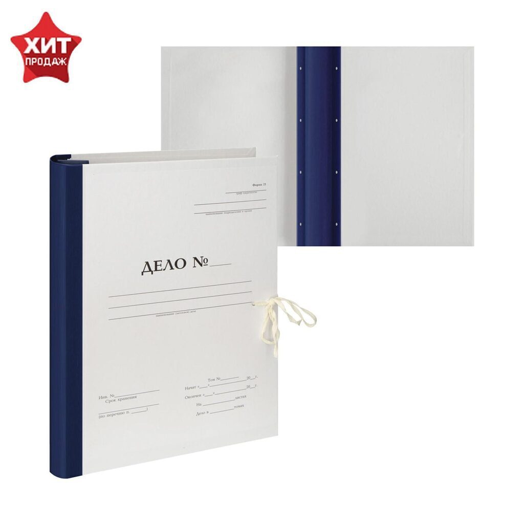 Архивная папка "Дело" (форма 21) А4, 50 мм, бумвинил, с гребешками, шнурки, синяя