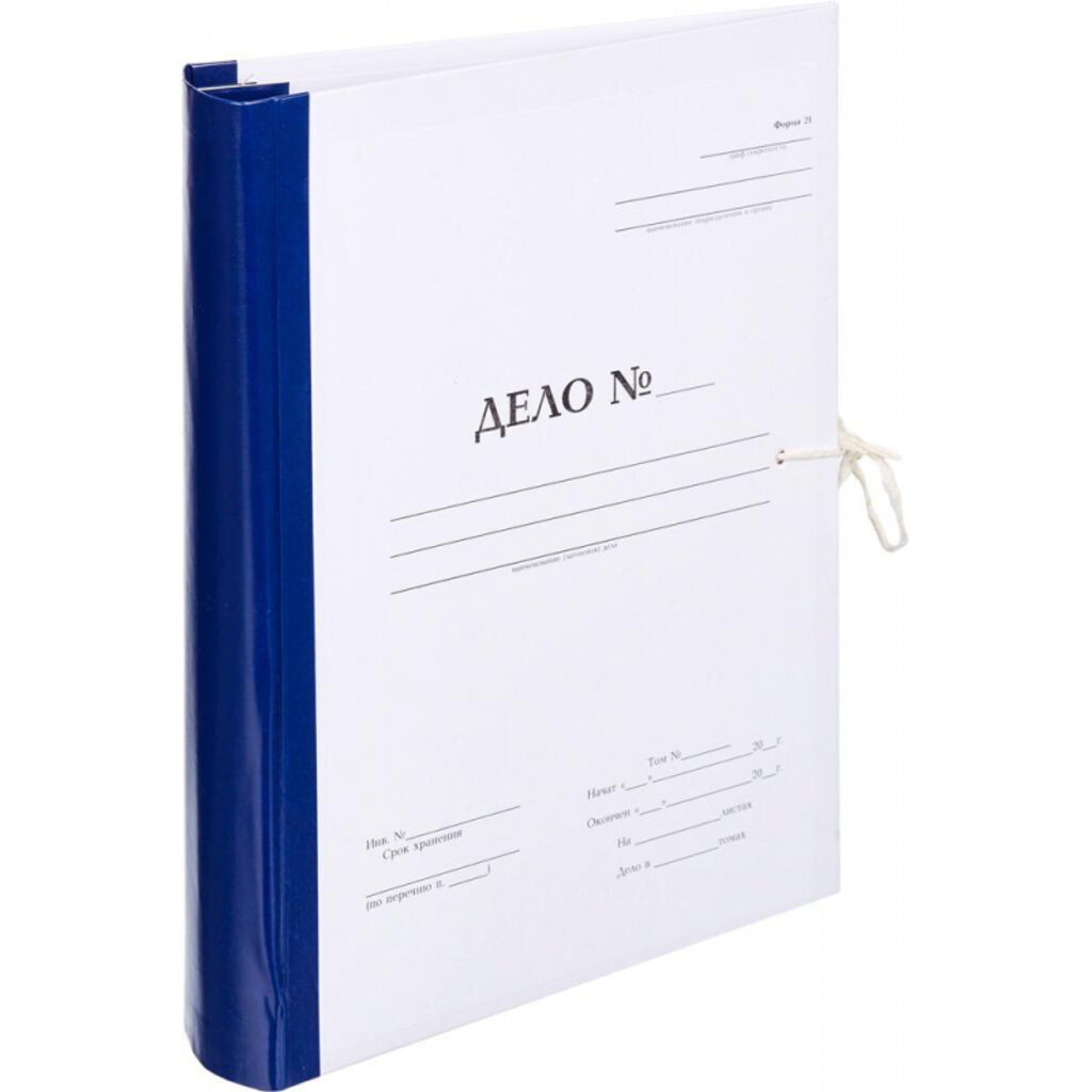 Архивная папка "Дело" (форма 21) А4, 70 мм, бумвинил, с гребешками, шнурки, синяя