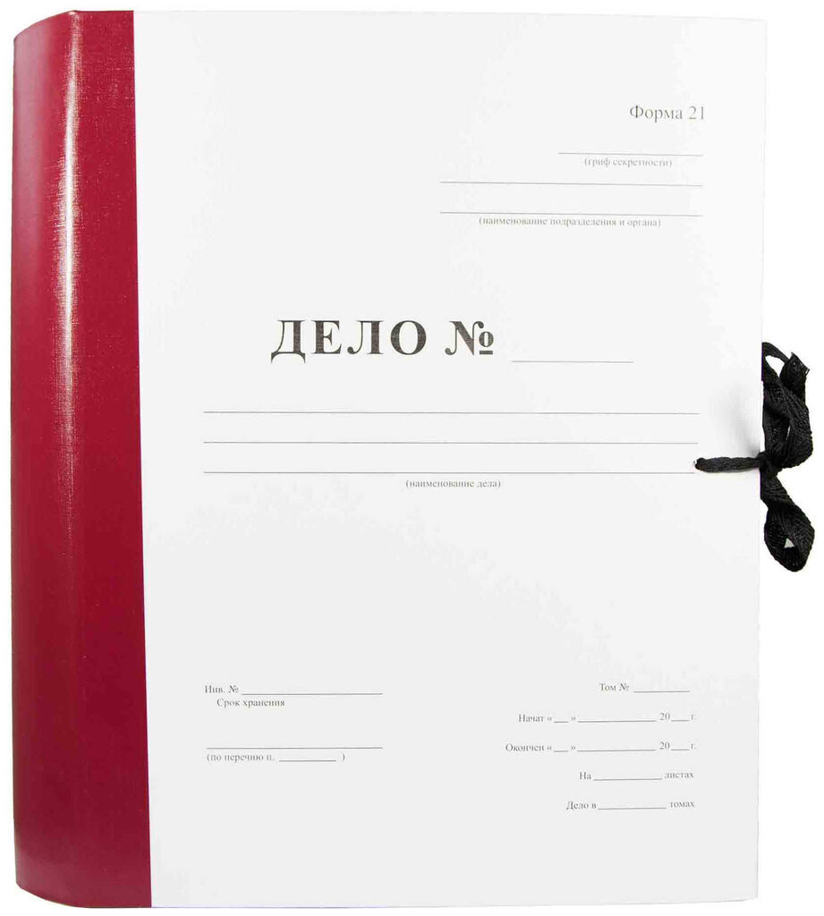 Архивная папка "Дело" (форма 21) А4, 80 мм, бумвинил, с гребешками, шнурки, бордовая
