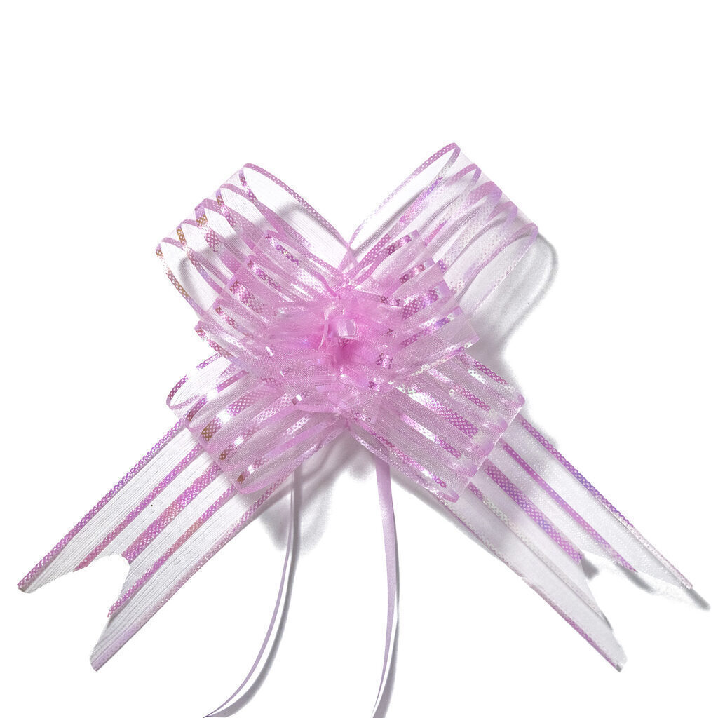 Бант подарочный затягивающийся 14см*50мм с органзой и перламутром, ассорти 10шт/уп