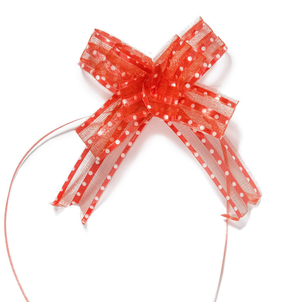 Бант подарочный затягивающийся 7см*18мм, с органзой, горошек КРАСНЫЙ, 10 шт/уп