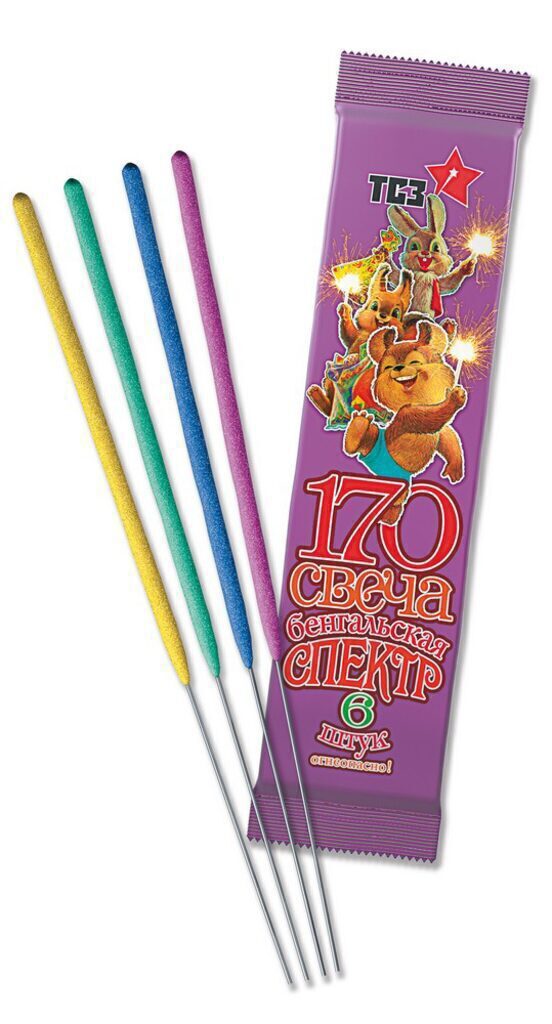 Бенгальские огни 6шт/уп 170мм "Спектр" толстая, разноцветная 30сек