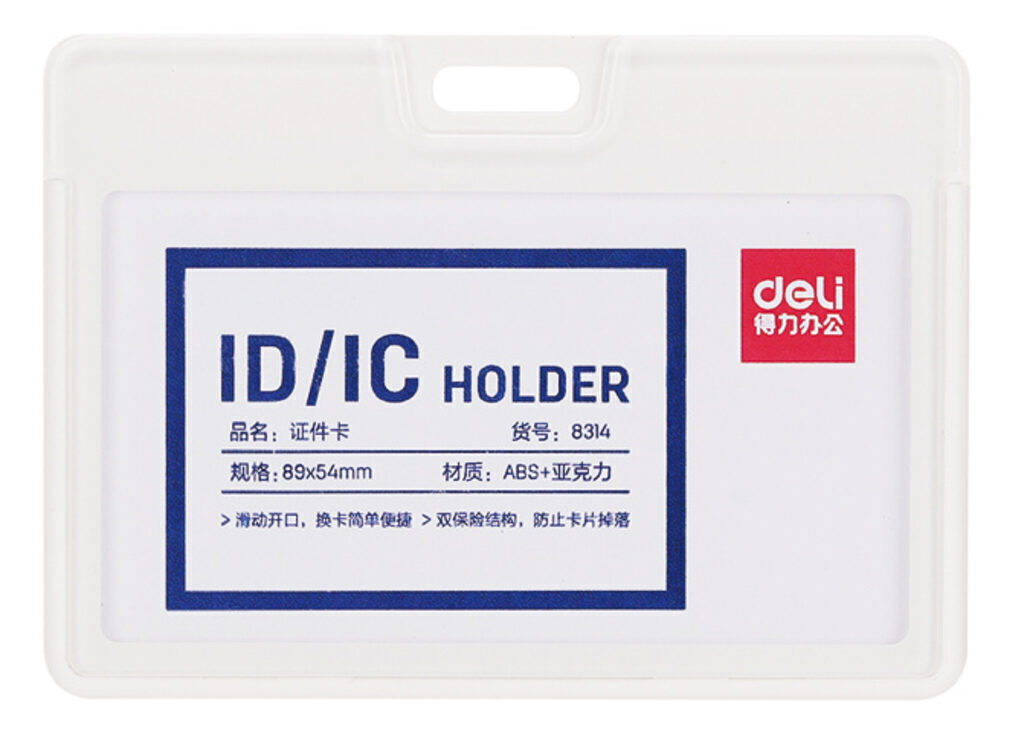 Бейдж для пропуска Deli 8314white 89x54мм горизонт. без крепления акрил/пластик белый 8314WHITE