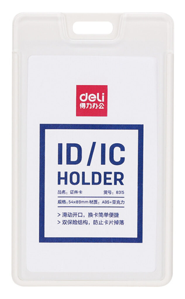 Бейдж для пропуска Deli 8315white 54х89мм вертик. без крепления акрил/пластик белый 8315WHITE