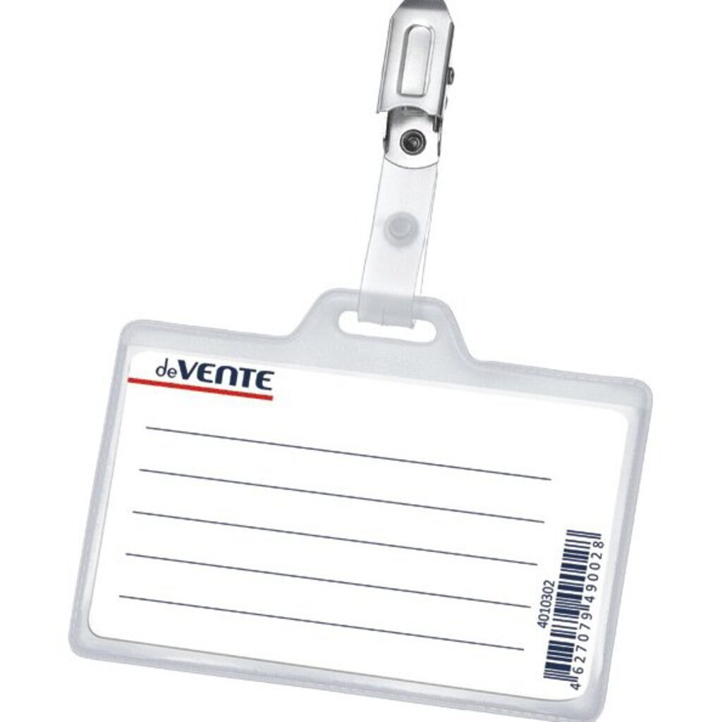 Бейдж "deVENTE" 60x90 мм, прозрачный с клипом
