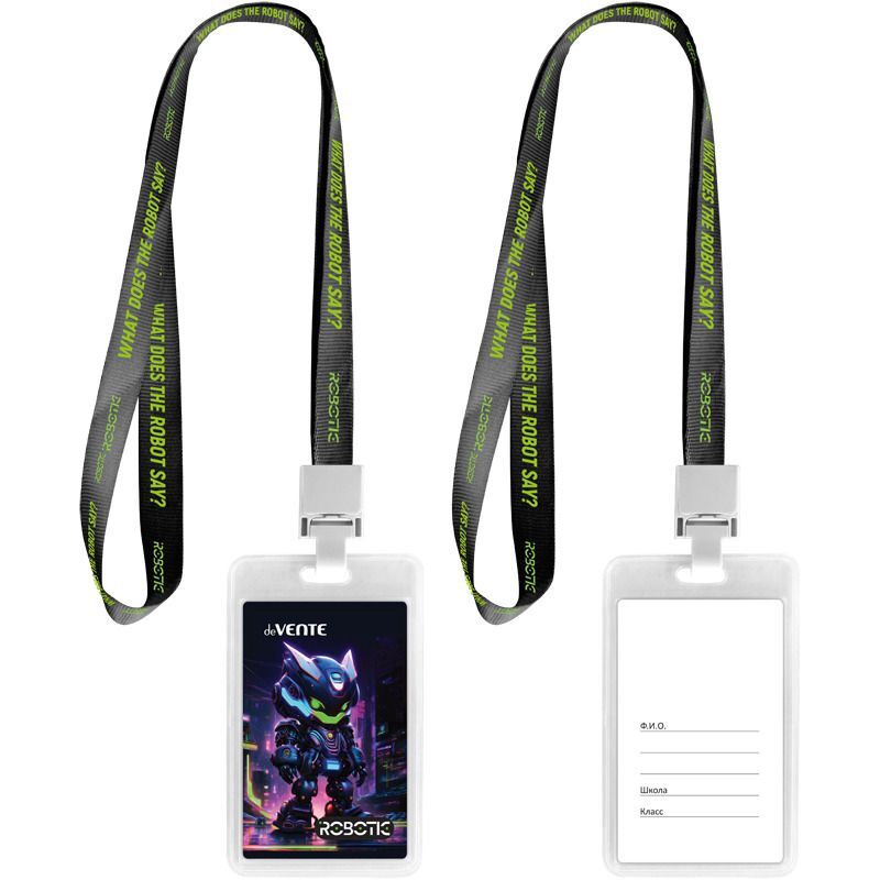 Бейдж школьный пластиковый"deVENTE. Robotic" 110x65 мм, вертикальный, прозрачный, ПВХ, на цветной ленте с принтом, с пластиковой клипсой