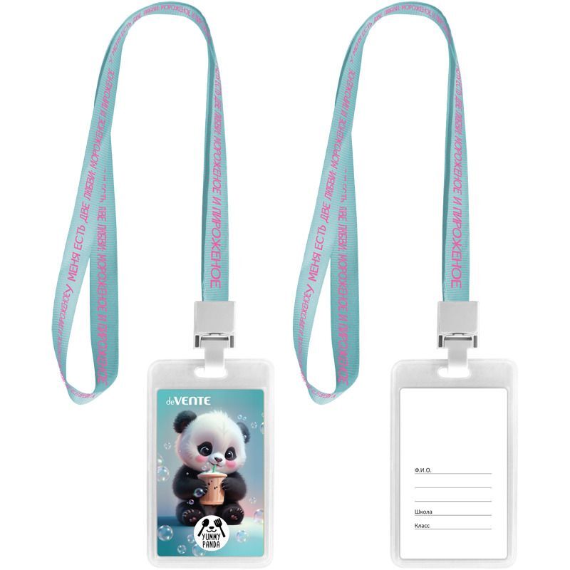 Бейдж школьный пластиковый"deVENTE. Yummy Panda" 110x65 мм, вертикальный, прозрачный, ПВХ, на цветной ленте с принтом, с пластиковой клипсой