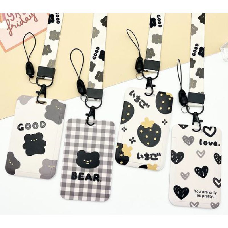 Бейдж школьный пластиковый "deVENTE. Monochrome cuteness" 110x70 мм, вертикальный, пластиковый, цветная лента с принтом с металлическим карабином, ассорти 4 дизайна