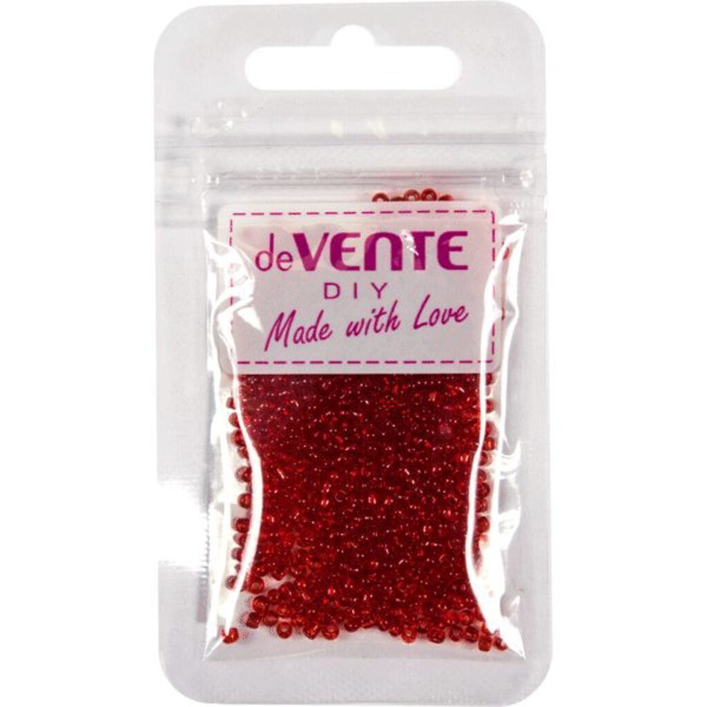 Бисер круглый прозрачный "deVENTE. Glass" стеклянный, 2 мм, 10 г, в пластиковом пакете с блистерным подвесом, красный