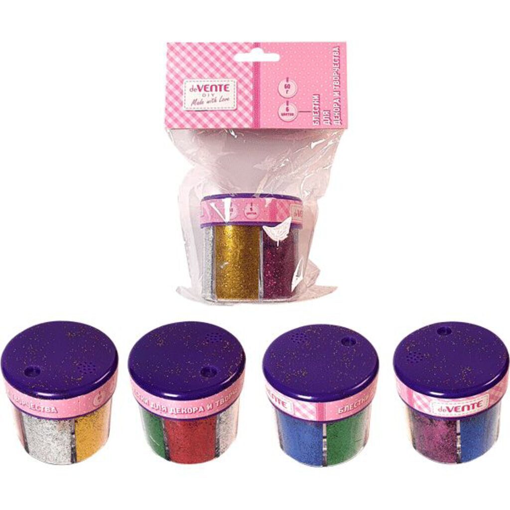 Блестки (глиттер) для декорирования "deVENTE. Basic" в диспенсере с дозатором, 60 г, 6 цветов, в пластиковом пакете с блистерным подвесом
