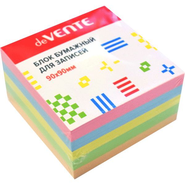 Блок бумаги для записи (90*90*50мм) цветной, 5цв., непроклеенный, 80г/м2