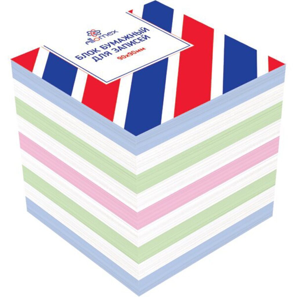 Блок бумаги для записи (90*90*90мм) цветной, непроклеенный, 65г/м2