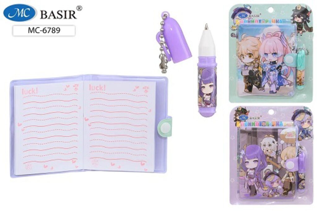 Набор подарочный канцелярский: детский "АНИМЕ"; блокнот на кнопке /10,3*8 см/+мини ручка, пластиковая упаковка на подложке /14,5*12 см/.