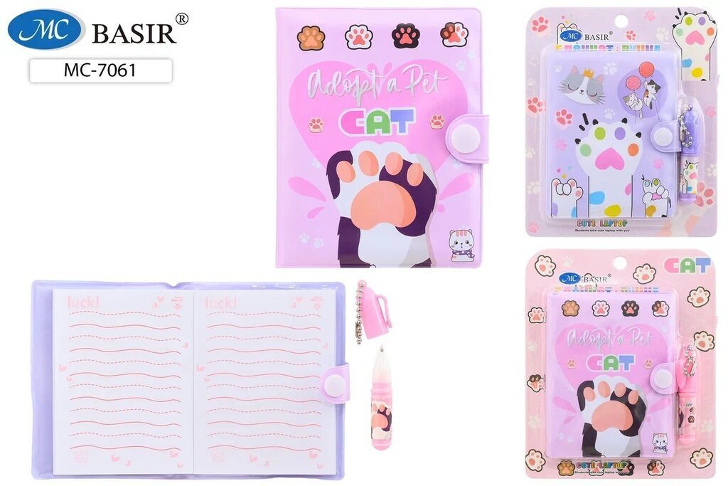 Набор подарочный канцелярский: детский Кошкины лапки"; блокнот на кнопке /10,3*8 см/+8-ми цветная авторучка+мини текстмаркер+диспенсер с детским скотчем, яркая упаковка-блистер на подложке