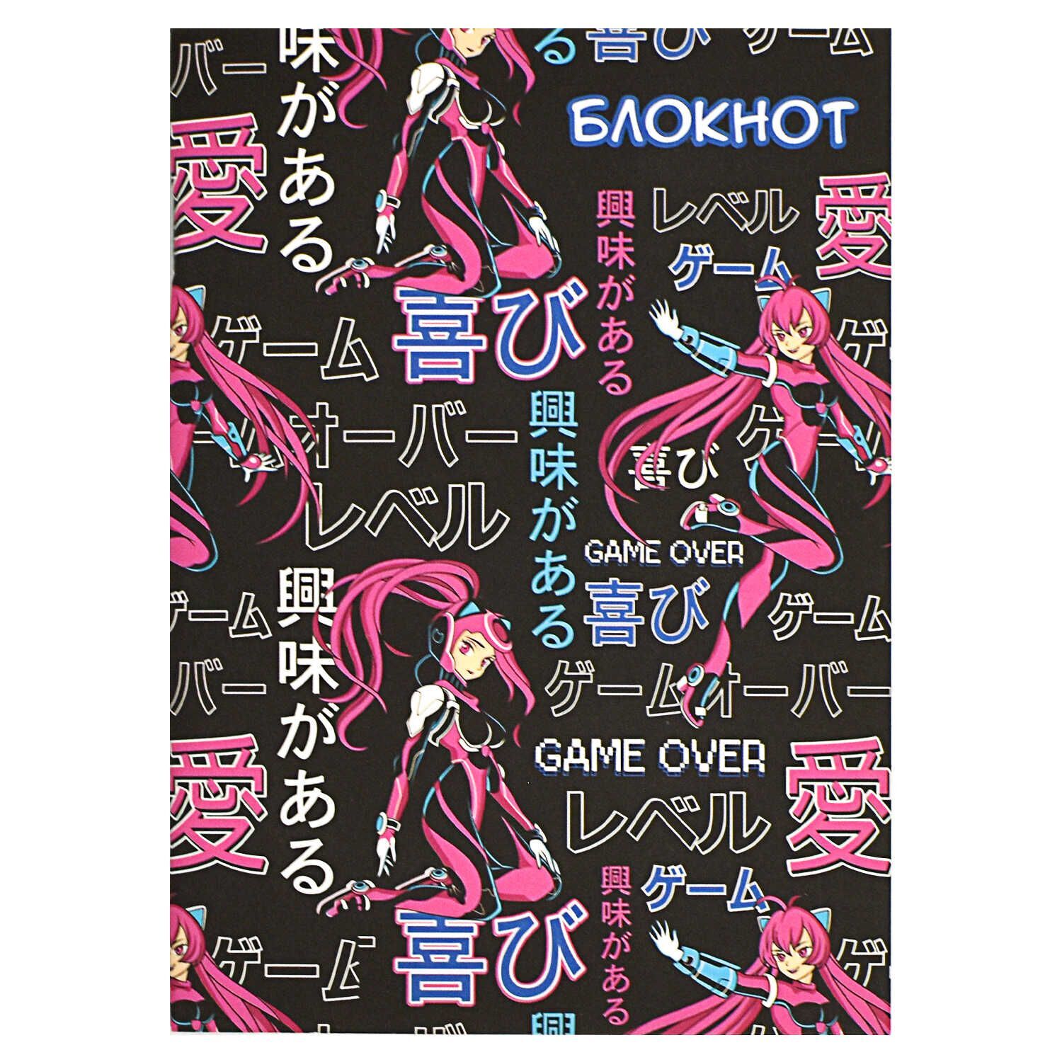 Блокнот 120*170мм 40л скоба "Кибераниме" в точку, софт тач вельвет