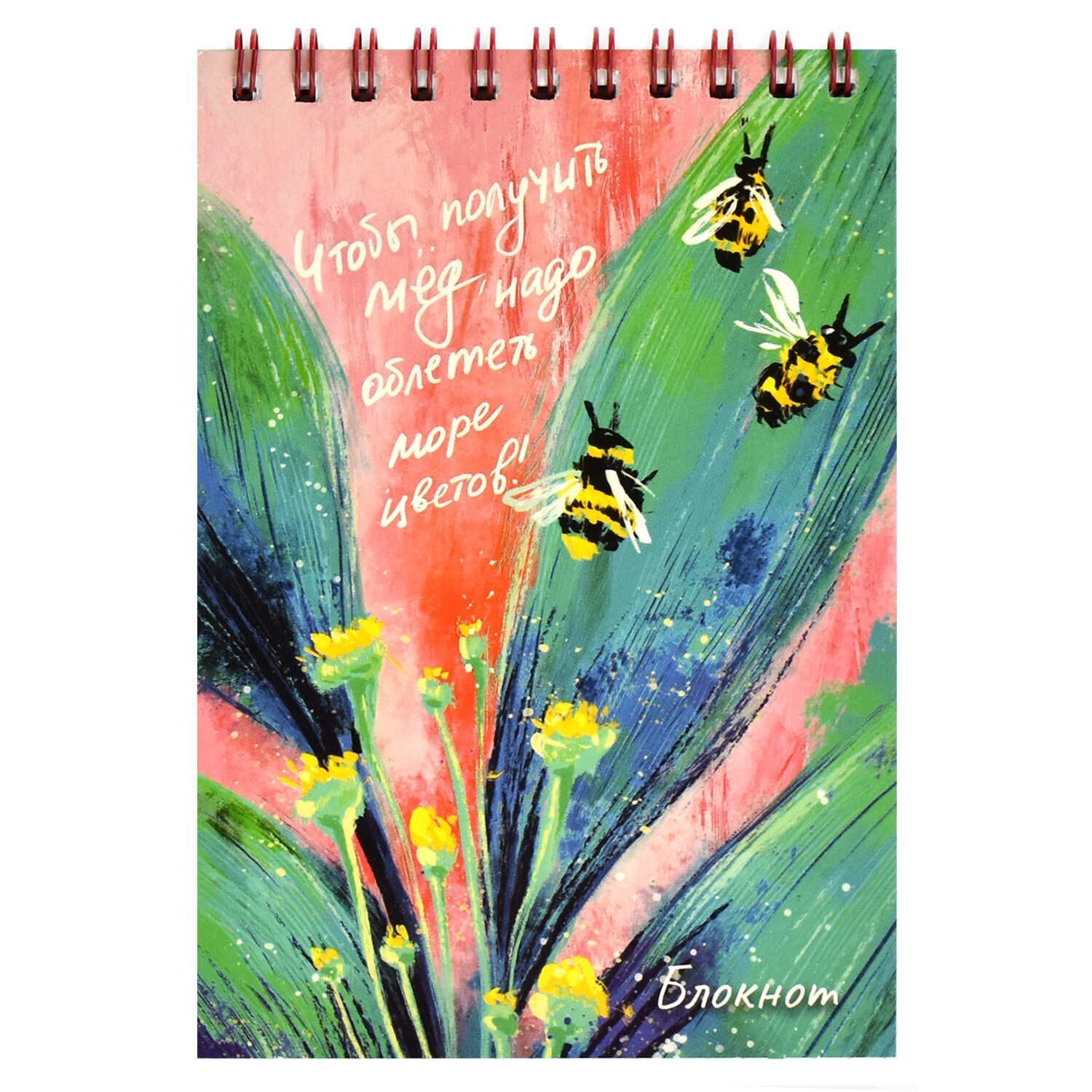 Блокнот. ПЧЁЛЫ. Формат: А6. Количество листов:80 л. Тип обложки - гребень по короткой стороне. Материал обложки:мелованный картон 210 г/м? , Внутренниый блок: белый офсет, 60 г/м?,