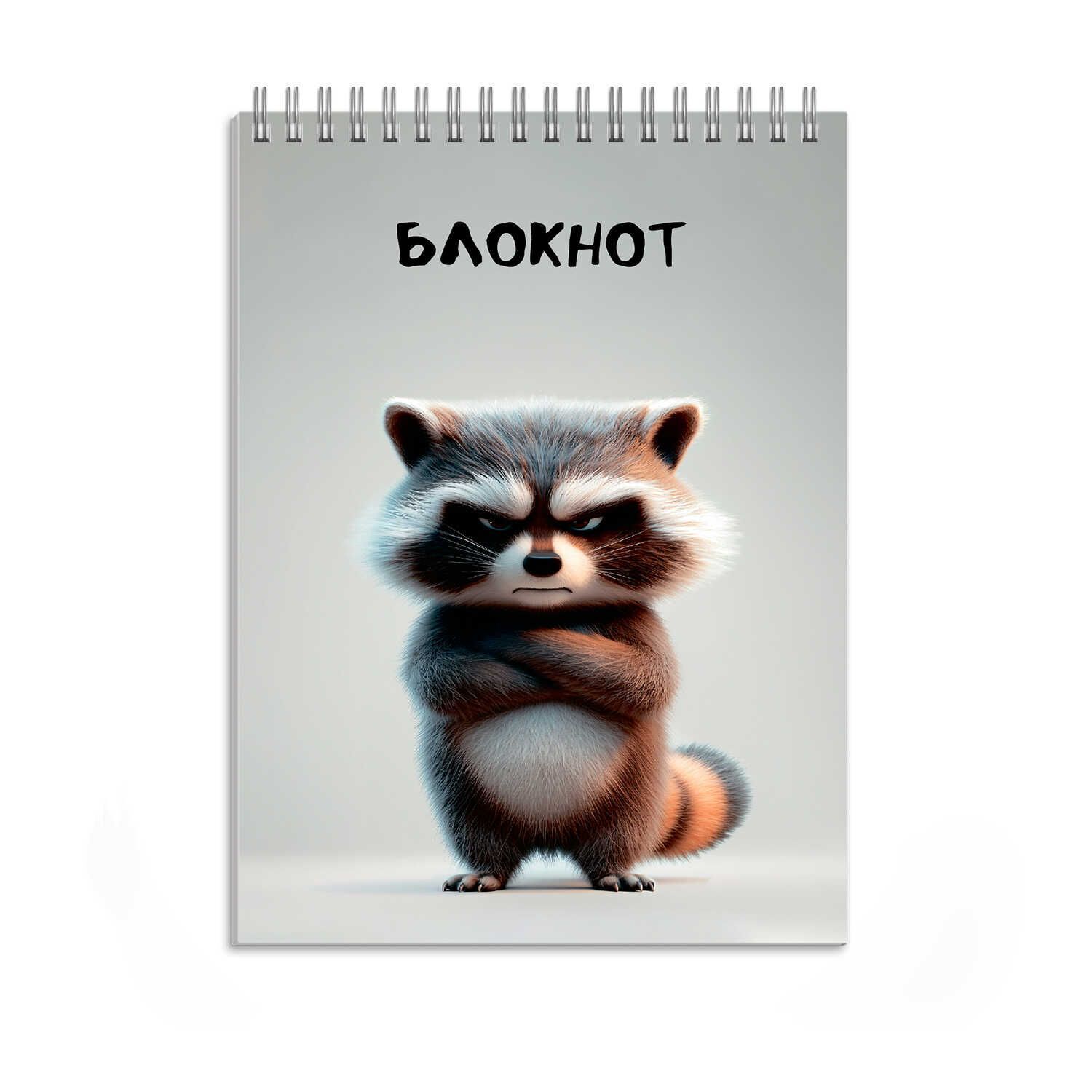 Блокнот А6 96л гребень "Сердитый енот" кл., УФ-лак