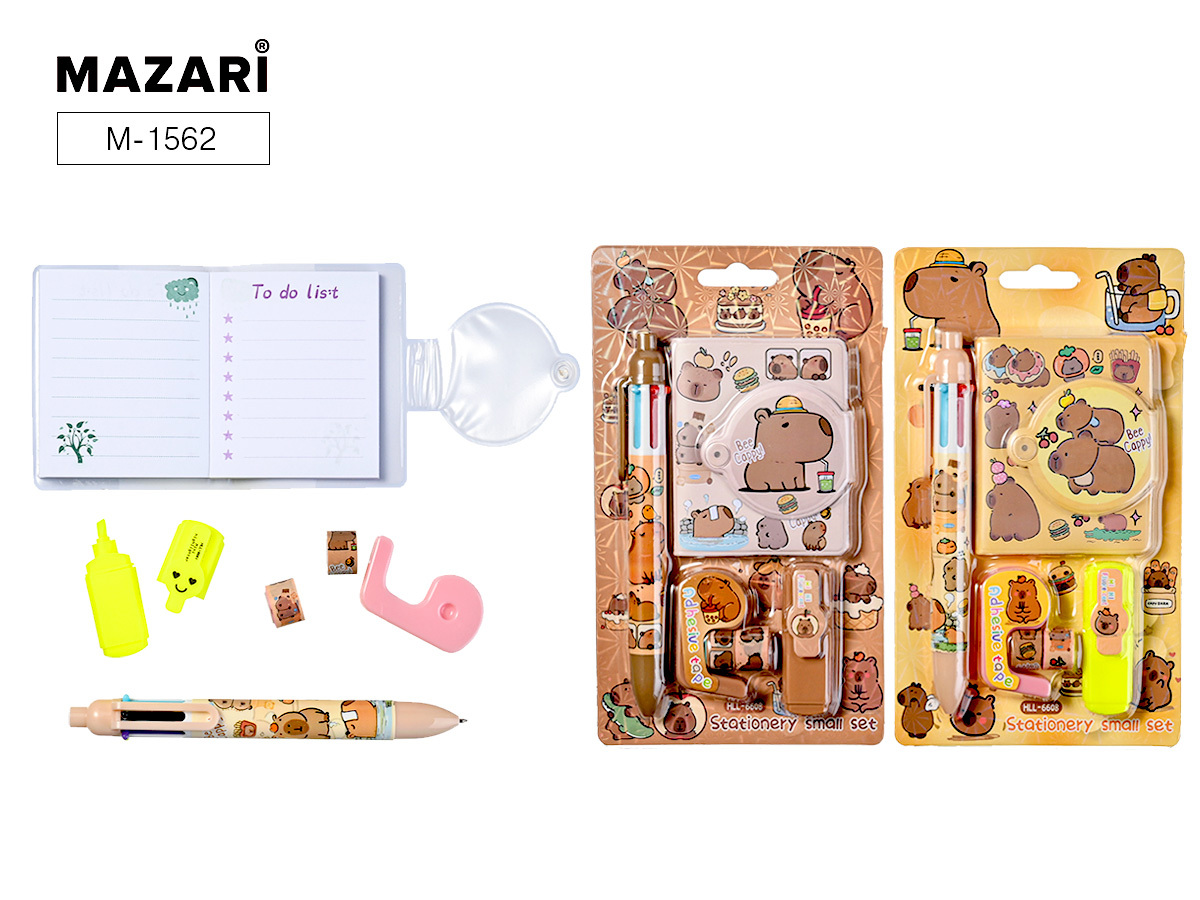 Блокнот А8 клеевой кор. "Капибара" лин, на кнопке + 6-цв.мини-ручка, скотч, текст.маркер, 2 скотча