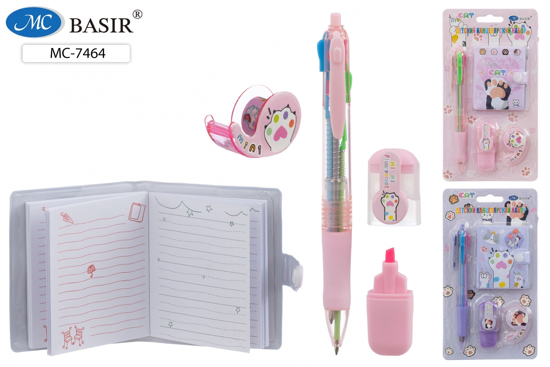Откройте для себя удивительный мир стиля и функциональности с нашим неповторимым набором! Этот комплект включает в себя стильный блокнот на кнопке /7*6см/+4-хцв.ручка+мини текстмаркер+диспенсер с ярким цветным скотчем