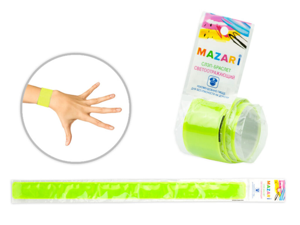Слэп-браслет светоотражающий, желтый, ОПП- упаковка с подвесом
