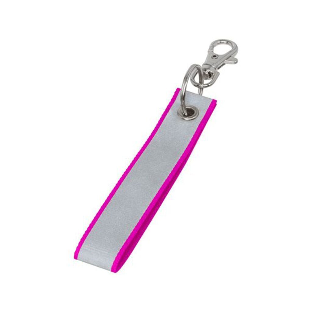 Брелок тканевый "deVENTE.Tape" 30x150 мм, световозвращающий белый, на неоново-розовой ленте, в комплекте с карабином, в пластиковом пакете с подвесом