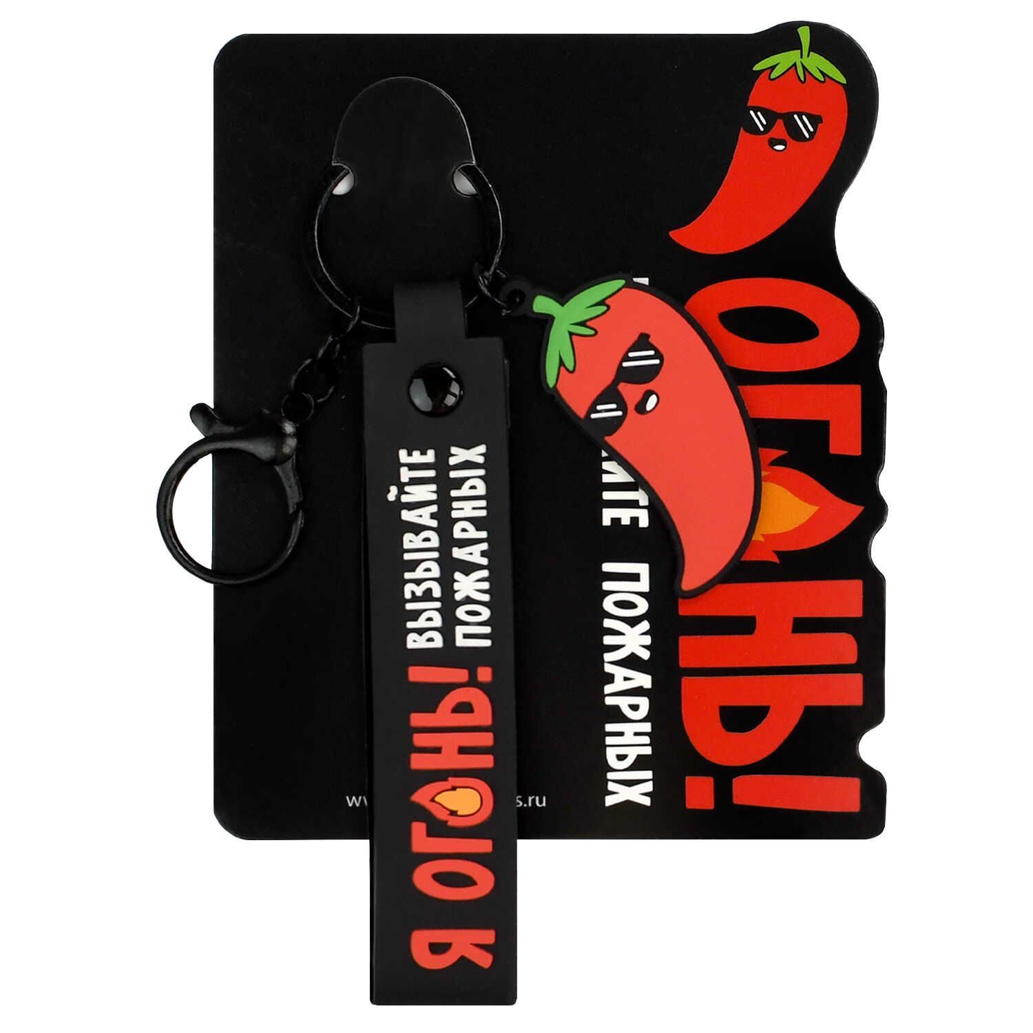 Брелок резиновый Я ОГОНЬ ( размер подвеса: 32х130 мм, материал подвеса: ПВХ; цвет подвеса: чёрный, красный; тип крепления: карабин (лобстер), кольцо двойное гладкое, цепочка (бельцер); индивидуальная упаковка: подложка из мелованного картона + ПЭТ-пакет с европодвесом)