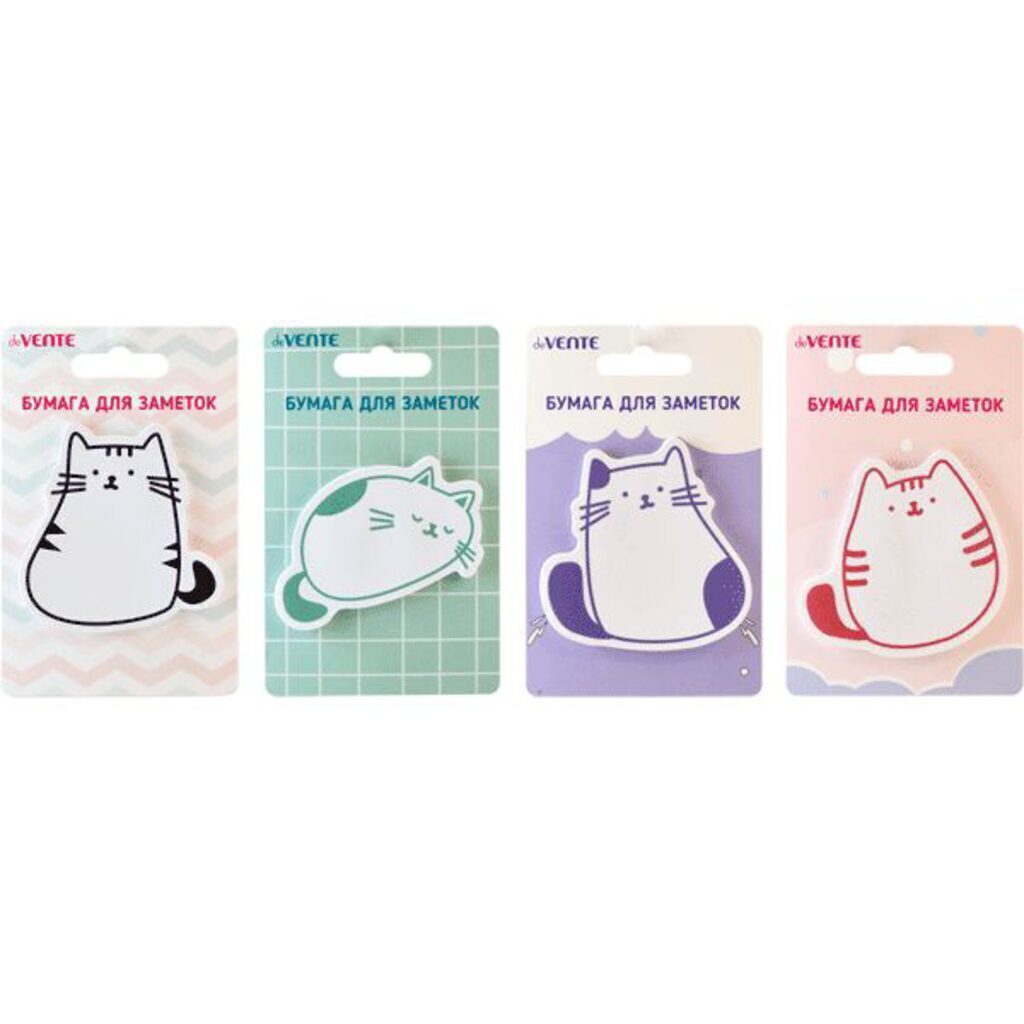 Клейкая бумага для заметок "deVENTE. Cats" 70x70 мм, 30 листов, офсет 80 г/м?, печать 1+0, ассорти форм и дизайнов, в картонном блистере и пластиковом пакете с европодвесом