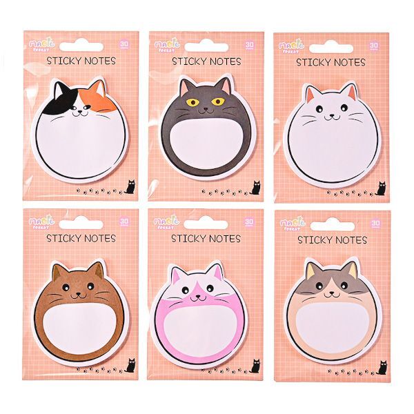 Бумага с липким краем 30л, фигурная "Котики" 75*80мм, 6 видов