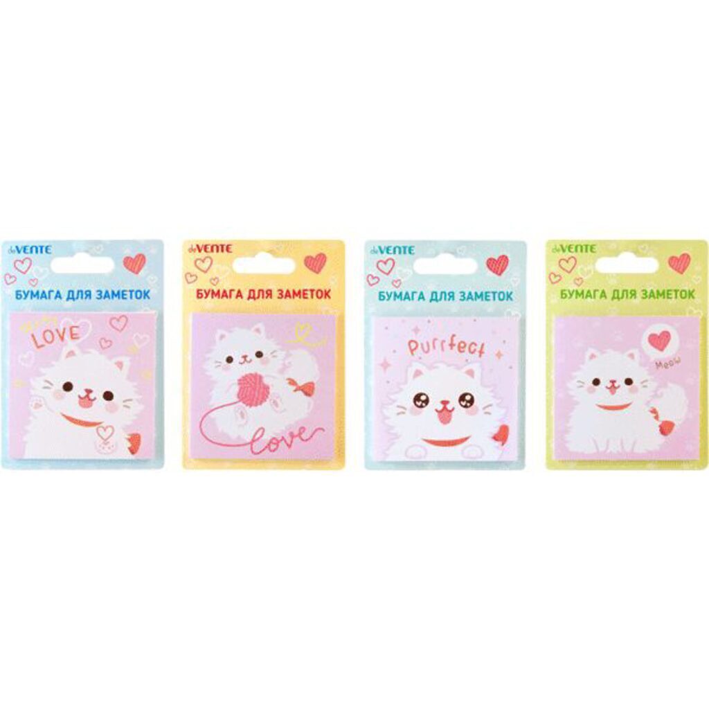 Клейкая бумага для заметок "deVENTE. White kitty" 75x75 мм, 30 листов, офсет 80 г/м?, печать 4+0, ассорти дизайнов, в картонном блистере и пластиковом пакете с европодвесом