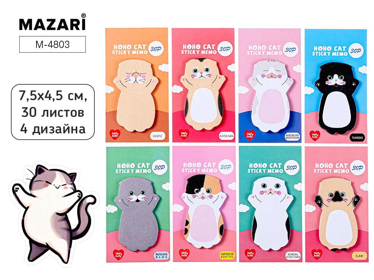 Бумага с липким краем 30л "Лапки" 75*45мм, 4 диз.
