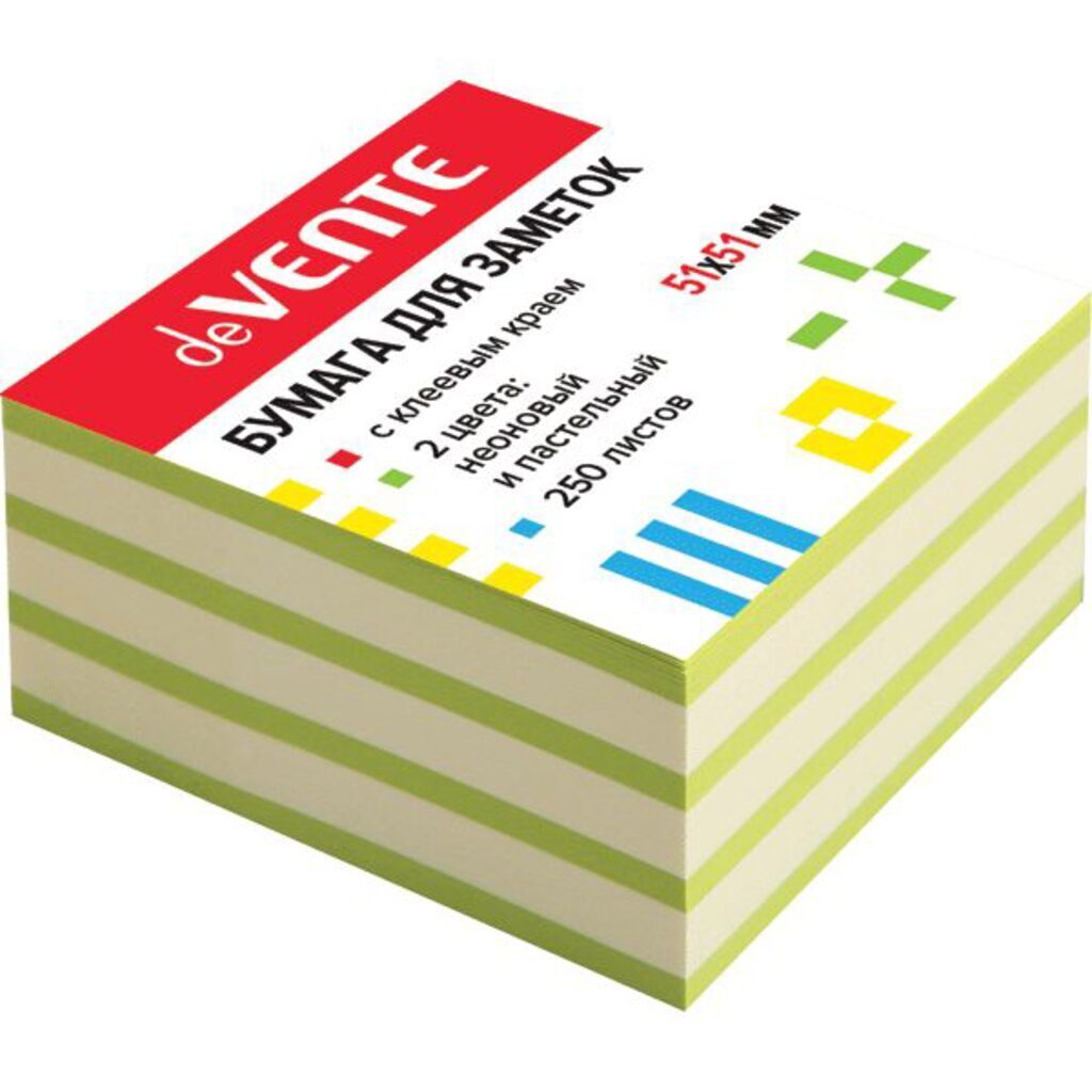Бумага для заметок с клеевым краем 51*51мм , 250л. 2 цвета в одном блоке- зеленый ПАСТЕЛЬ+НЕОН. Плотность 70 г/м2. Упакован в термоусадочную пленку. Блок бумаги с липким слоем предназначен для удобного использования в качестве бумаги для заметок, напоминаний, закладок. На один край листа нанесен липкий клейкий слой, который надежно прикрепит листок к ровной поверхности. Легко приклеивать и отклеивать. Клей не оставляет следов и пятен.