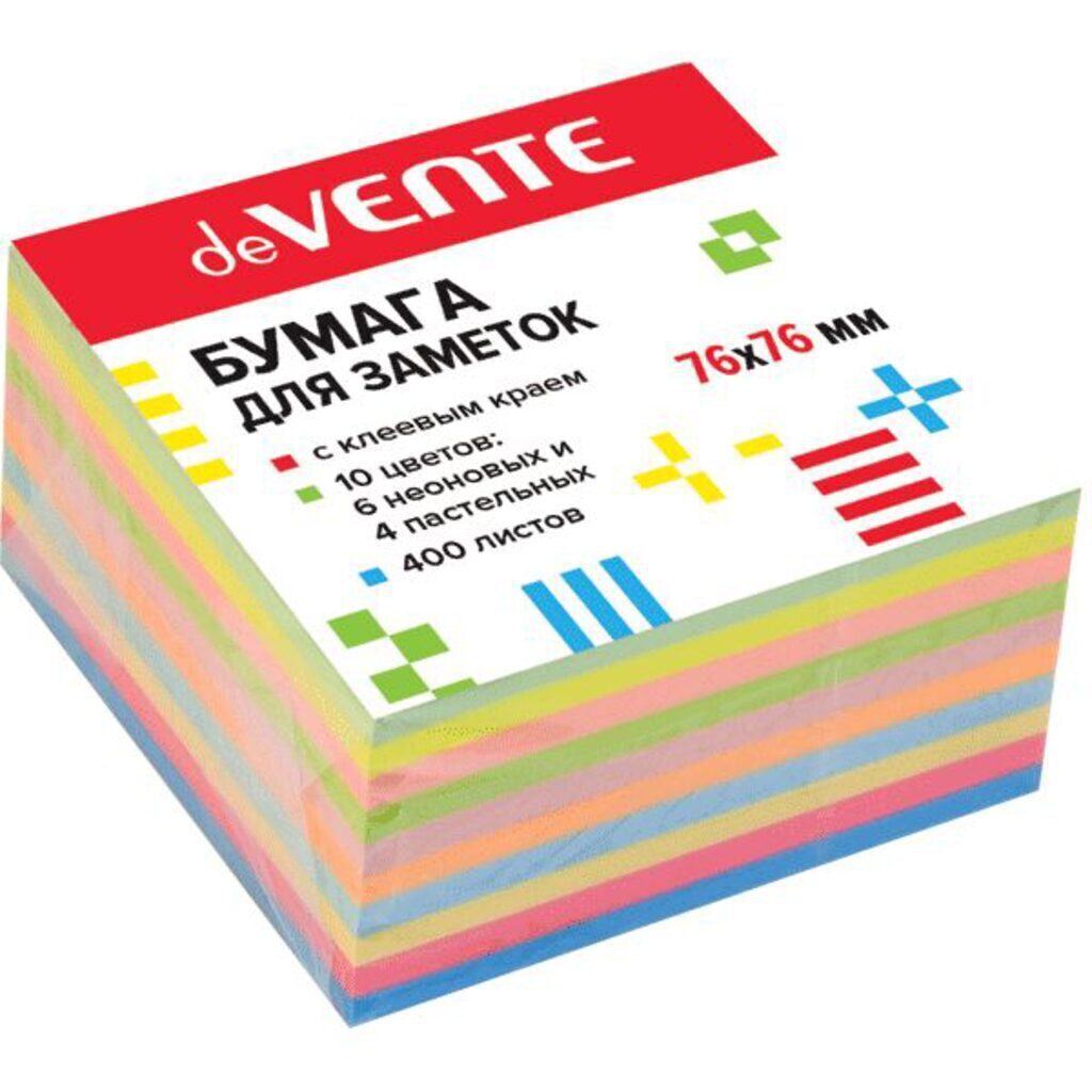 Клейкая бумага для заметок "deVENTE" 76x76 мм, 400 листов, офсет 75 г/м?, 6 неоновых и 4 пастельных цветов