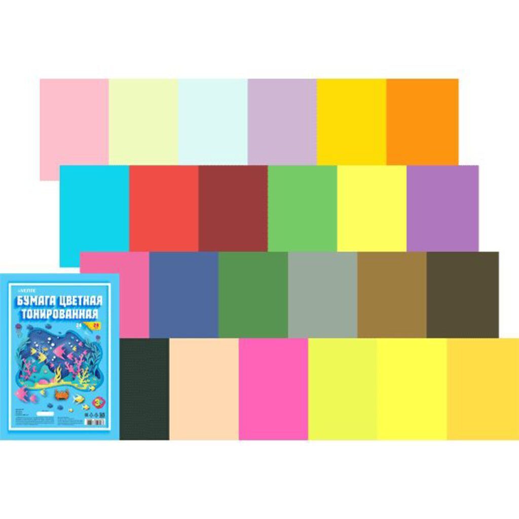Бумага цв. А4 24цв. 24л. тонированная, двусторонняя., пл. 80 гр/м2