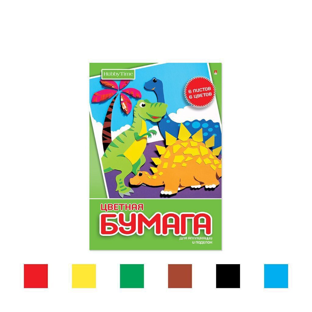 Бумага цв. А4 6цв. 6л. немелов., газетная, одностор., пл. 45 гр/м2, на скобе