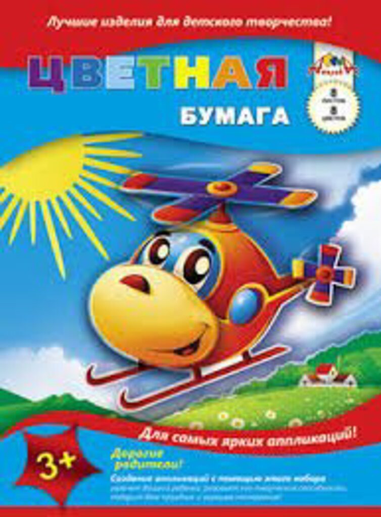 Бумага цв. А4 8цв. 8л. немелов., офсет., двустор., пл. 50 гр/м2 "Ассорти", на скобе