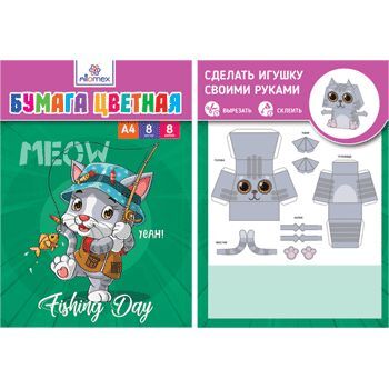 Бумага цветная газетная "Attomex. Котик" A4 (200x280 мм), 50 г/м², A4, 8 цв, 8 л, обложка офсет 80 г/м², на скобе
