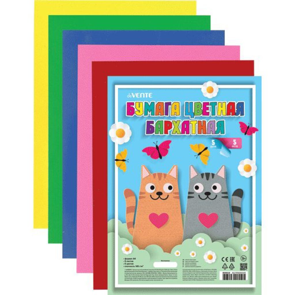 Бумага цв. бархатная А4 5цв. 5л. офсет., одностор., пл. 145 гр/м2