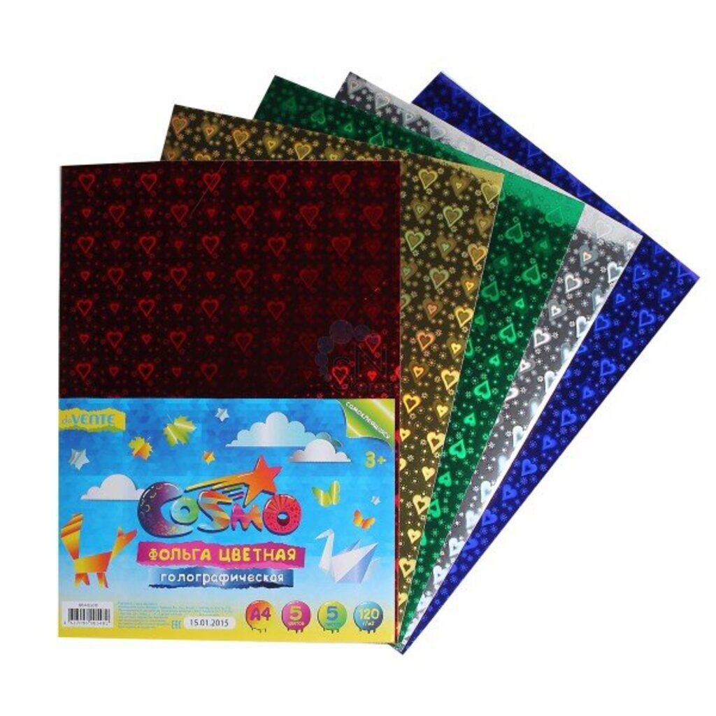 Цветная бумага самоклеящаяся голографическая 5 листов 5 цветов. Плотность 120 г/м2. упаковка пластиковый пакет с европодвесом