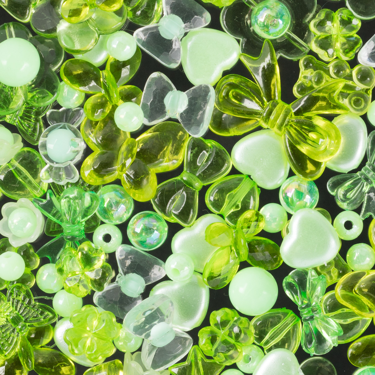 Бусины пласт. "Hobbius" "Ассорти" 50гр 06 зеленые/прозрачные