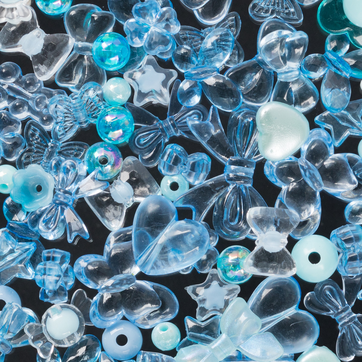 Бусины пласт. "Hobbius" "Ассорти" 50гр 07 голубые/прозрачные