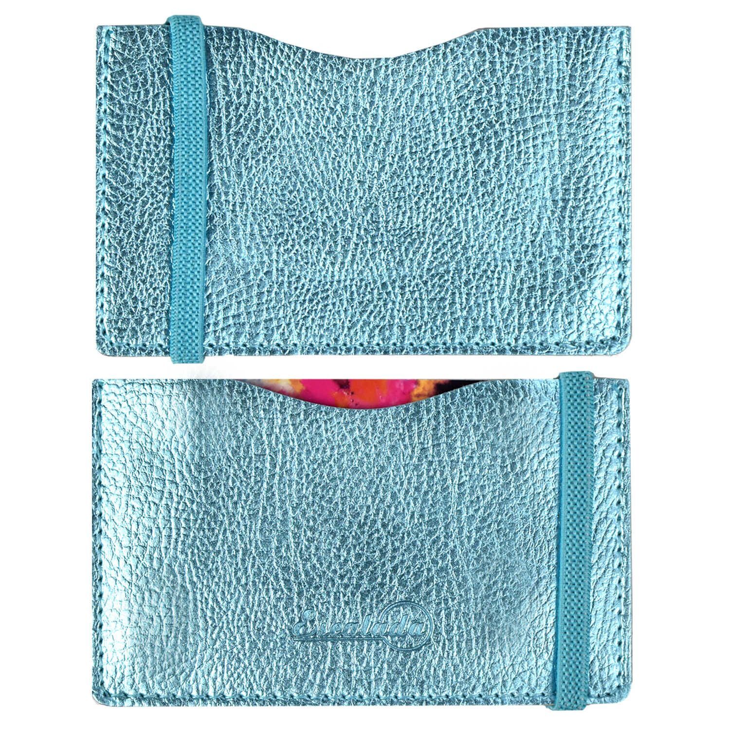 Чехол д/пласт.карт "Наппа голубой металлик" 108*65мм, блинт.тиснение, 2 отд., резинка