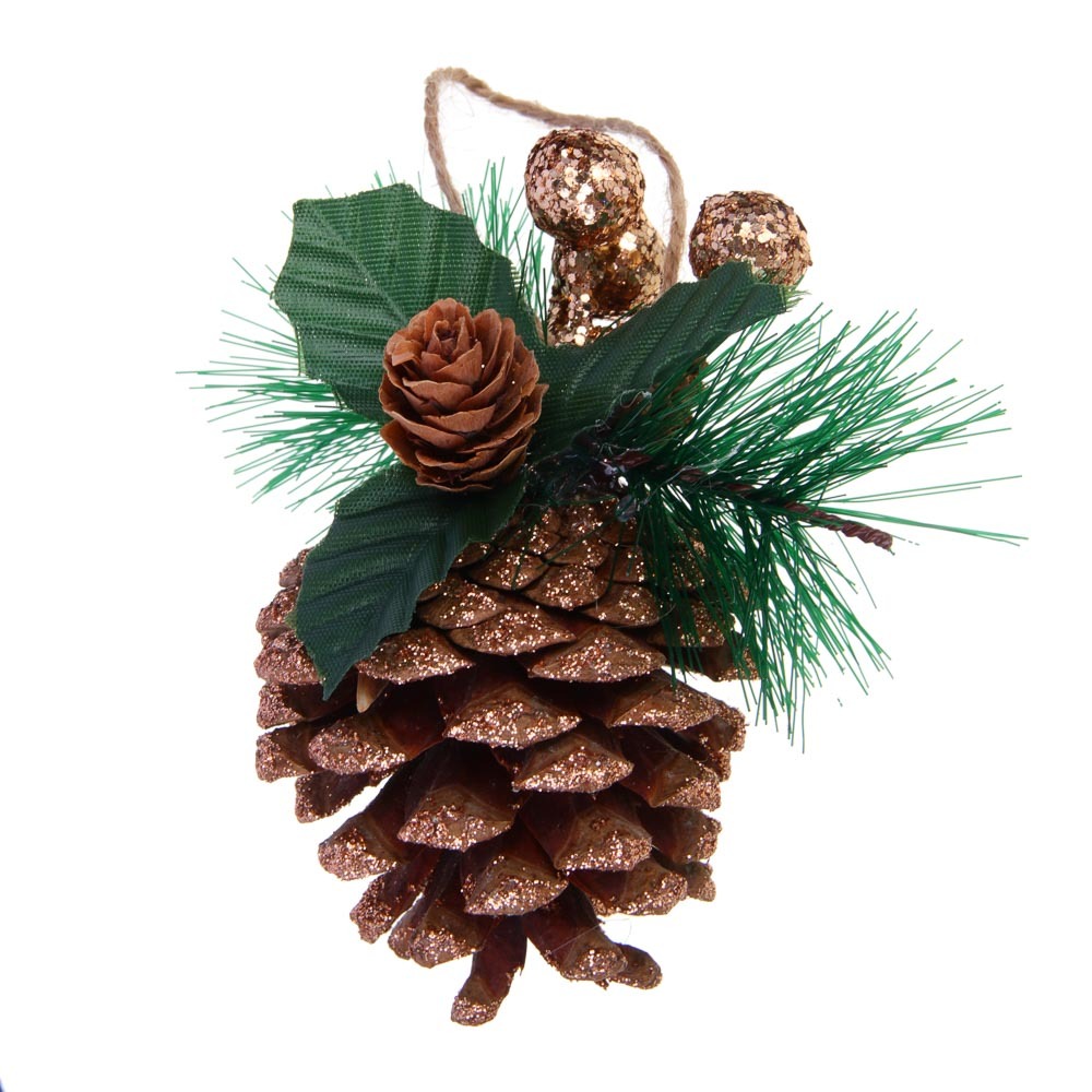 Праздничная подвеска в виде шишки украшена хвойным декором, блестящими ягодами и глиттером, создавая атмосферу зимнего леса. Компактный размер (7x10 см) и петелька для подвешивания позволяют легко разместить ее на елке или в любой другой части дома. Изготовленная из легкого и прочного пластика, она устойчива к повреждениям и прослужит вам долгие годы. Идеальный аксессуар для тех, кто хочет добавить блеска и природного шарма в новогодний декор.