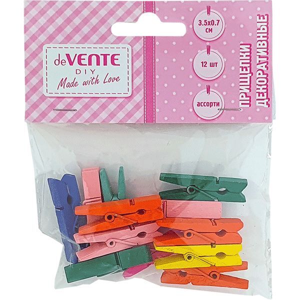 Декоративные элементы - это маленькие деревянные прищепки, выкрашенные разными яркими и насыщенными цветами. Применяются в скрапбукинге и кардмейкинге как инструмент для фиксации какой-либо детали или как самостоятельный декоративный элемент.