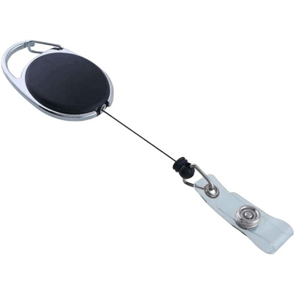 Держатель для бейджа с рулеткой "deVENTE" круглый, черный, с фиксатором в виде карабина, длина нити в рулетке 80 см, в пластиковом пакете