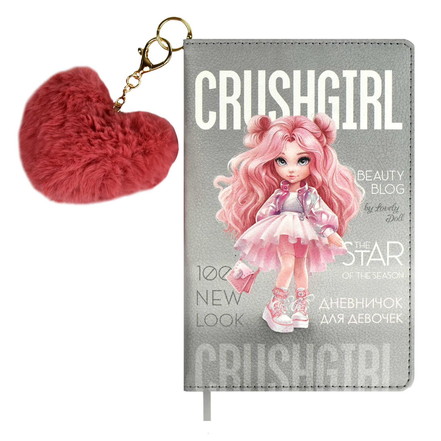 Дневник для девочек А6+ 96л., тв.обл., кожзам "Красотка" брелок
